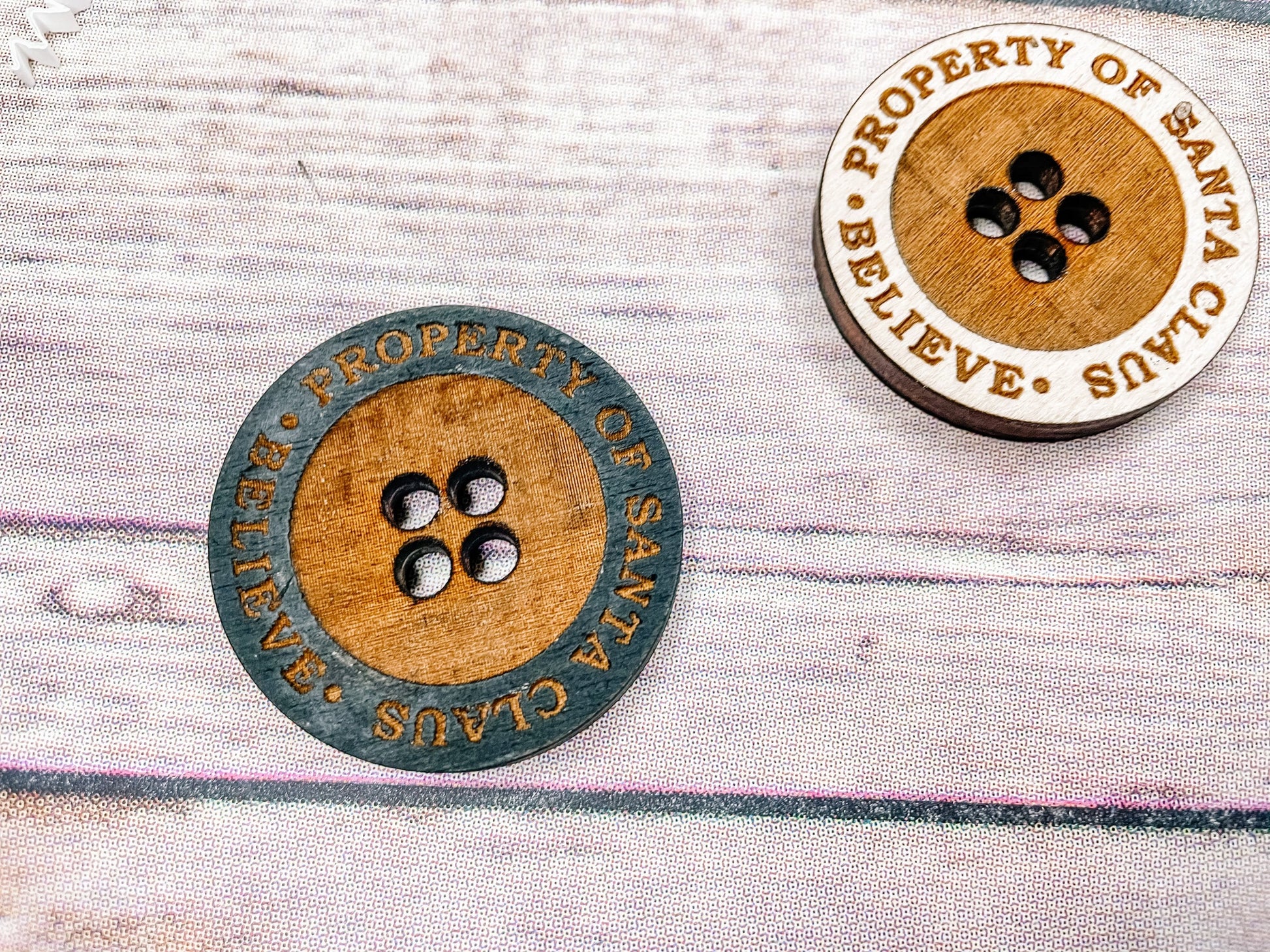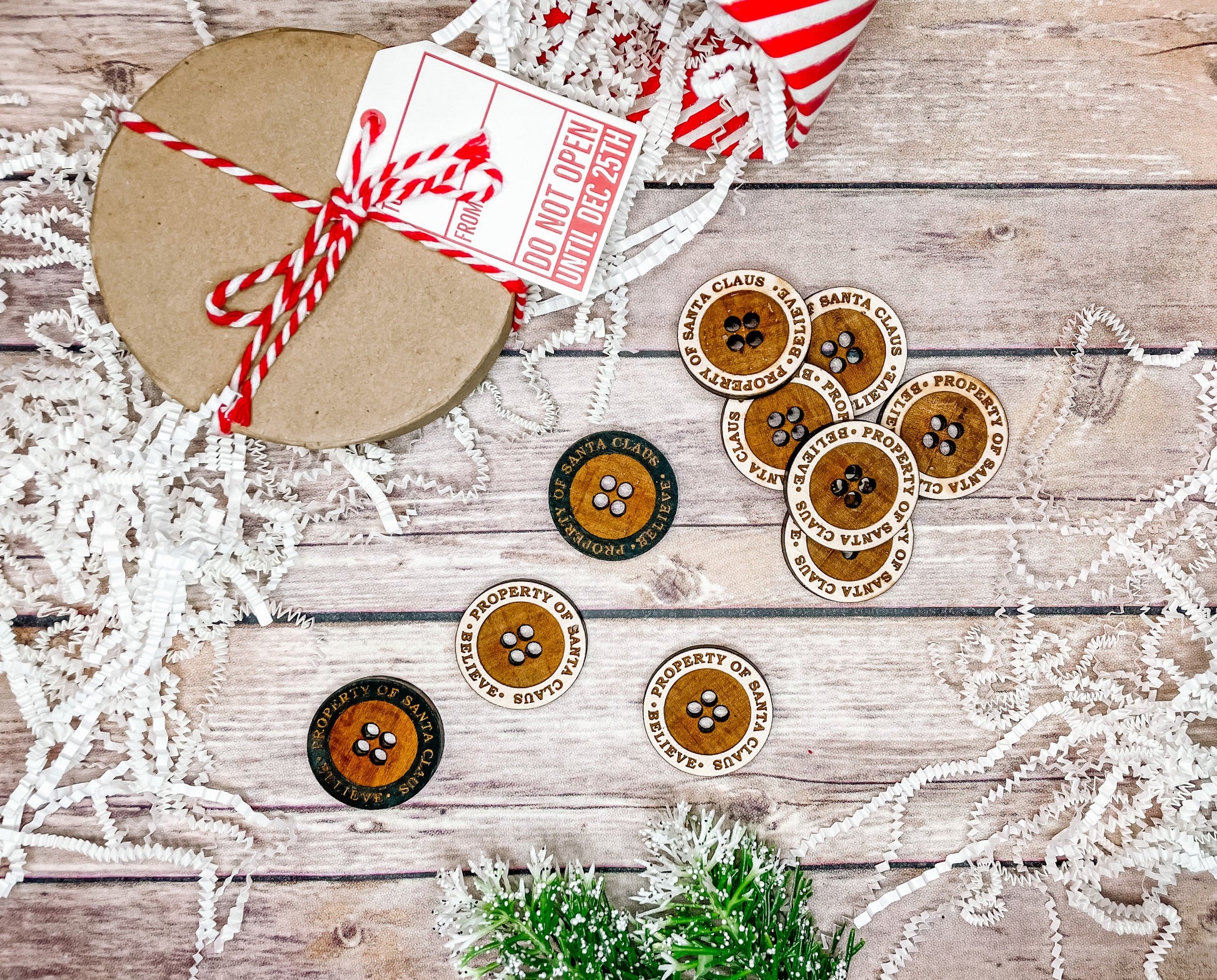 This Christmas Keepsake Button is a realistic 2.5”, laser engraved on 1/4” birch wood.