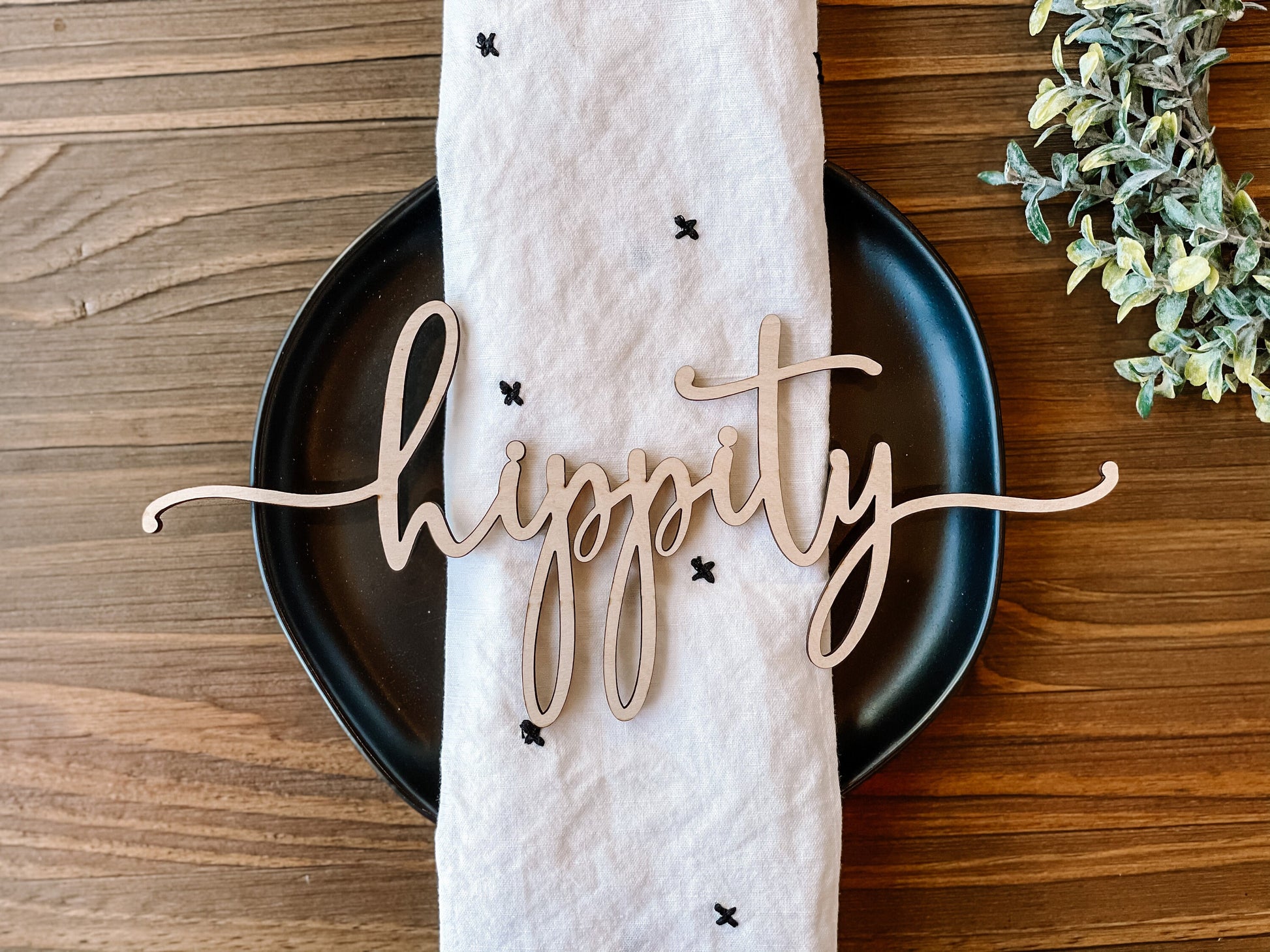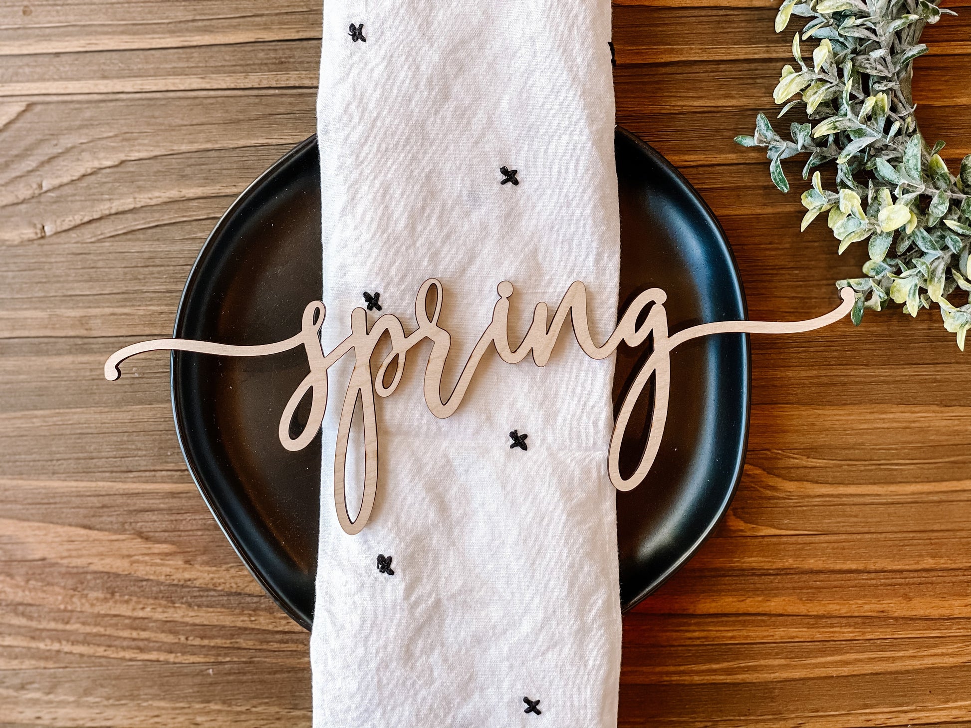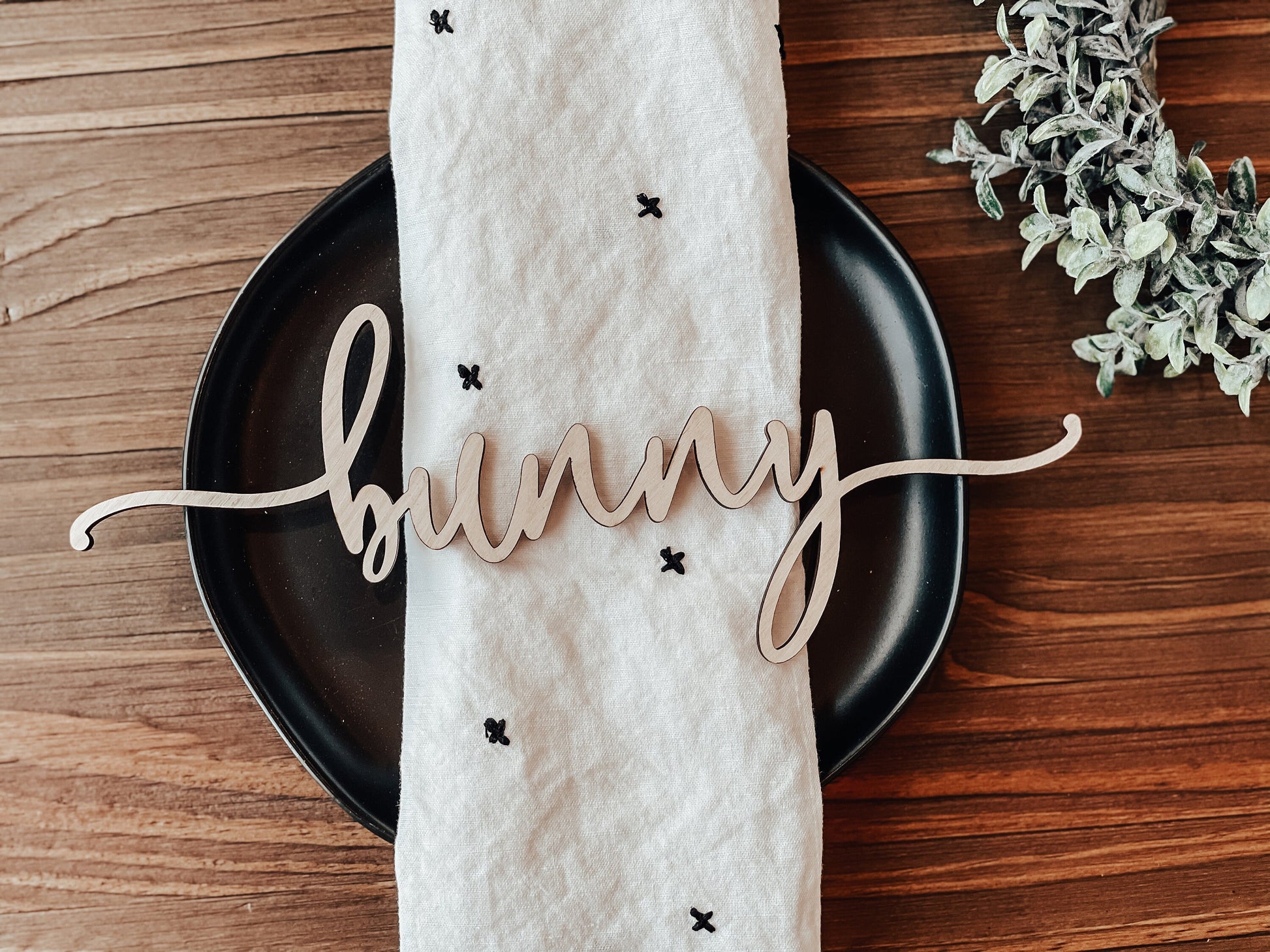 Create the perfect Easter tablescape with these spring words! Laser cut from 1/4” wood, they will help you to create a festive holiday table year after year. Each word measures 11” long, perfect for creating a memorable table setting.